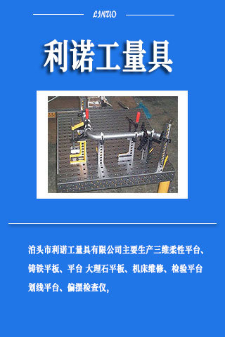 泊頭市利諾工量具有限公司加工、銷售、維修各種規格鑄鐵平臺,鑄鐵平板,大理石平臺,大理石平板,大理石構件,檢驗平臺,檢驗平板,劃線平臺,劃線平板,焊接平臺,焊接平板,三維柔性焊接平臺,三維柔性焊接平板,裝配平臺,裝配平板,試驗臺,機床工作臺,墊鐵,鑄件,方箱,彎板,偏擺檢查儀,機床配附件,機床維修,機床修理